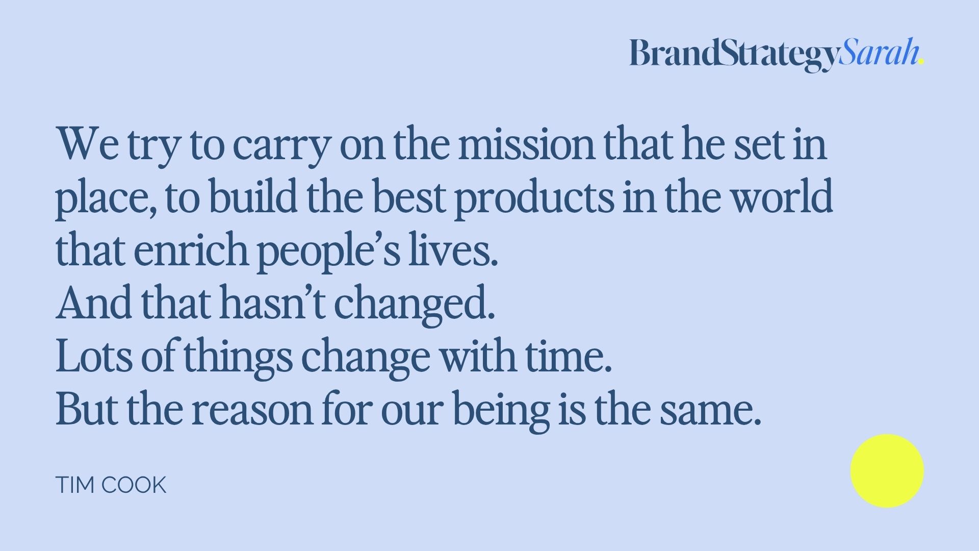 Making money, profit, delivering returns to shareholders - these are the outcomes – not the mission itself. You hear this in interviews with Tim Cook: