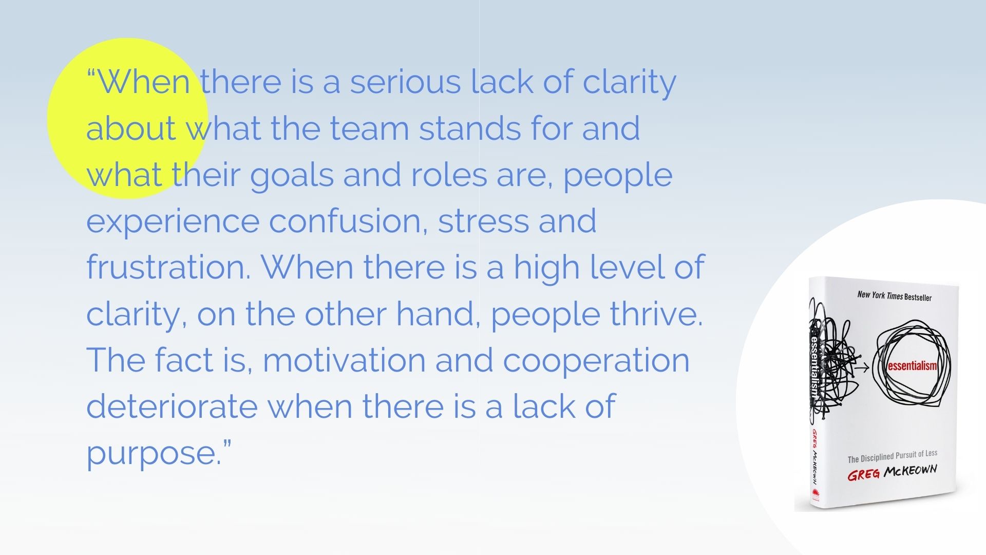 Greg McKeown's study of 500+ people across 1,000 teams (in Essentialism) found a consistent pattern: clear shared direction transforms performance. Without it, energy and motivation diminish.